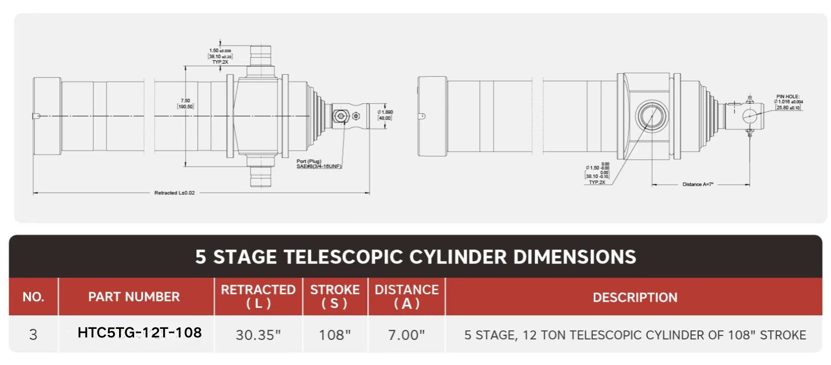 "HTC5TG-12T-108"، 5 اسٹیج، 108 کا 12 ٹن" اسٹروک ٹیلیسکوپک سلنڈر
