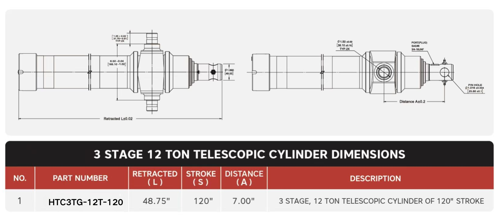 "HTC3TG-12T-120"، 3 اسٹیج، 120 کا 12 ٹن" اسٹروک ٹیلیسکوپک سلنڈر