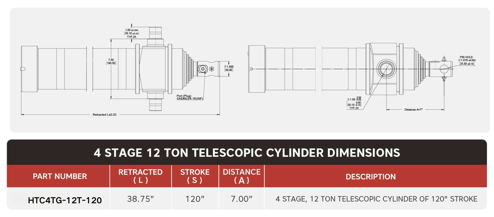 "HTC4TG-12T-120"، 4 اسٹیج، 120 کا 12 ٹن" اسٹروک ٹیلیسکوپک سلنڈر