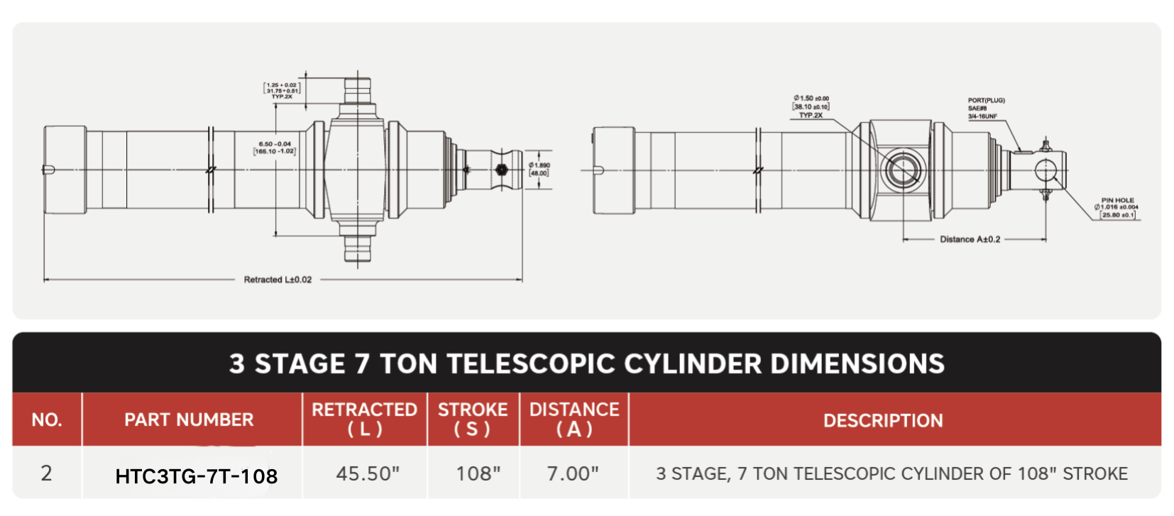"HTC3TG-7T-108"، 3 اسٹیج، 108 کا 7 ٹن" اسٹروک ٹیلیسکوپک سلنڈر