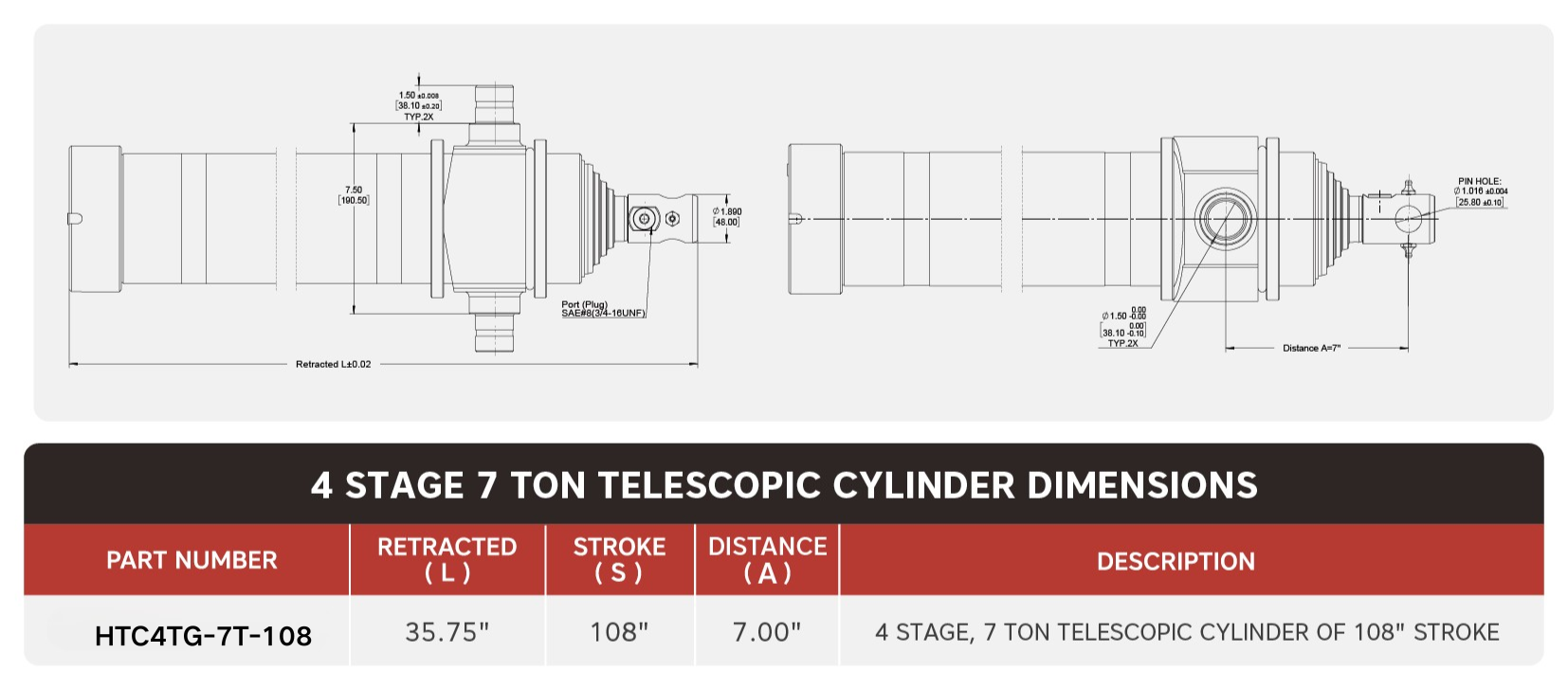 "HTC4TG-7T-108"، 4 اسٹیج، 108 کا 7 ٹن" اسٹروک ٹیلیسکوپک سلنڈر