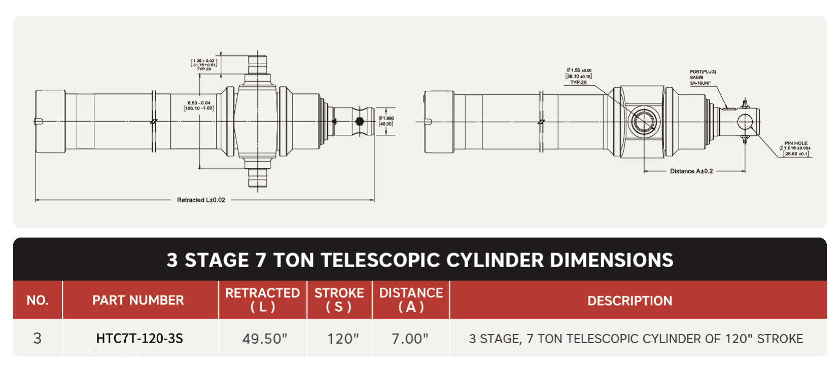 "HTC3TG-7T-120"، 3 اسٹیج، 120 کا 7 ٹن" اسٹروک ٹیلیسکوپک سلنڈر