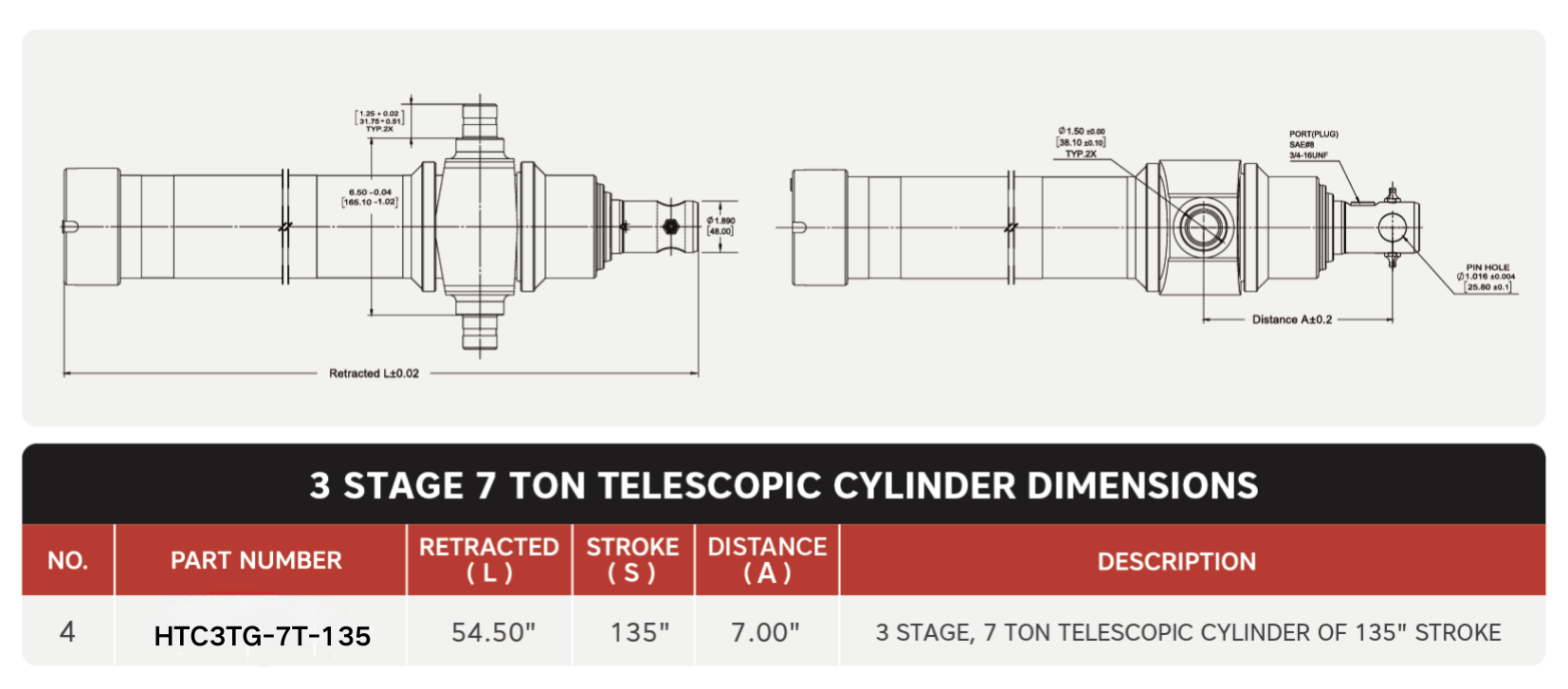 "HTC3TG-7T-135"، 3 اسٹیج، 135 کا 7 ٹن" اسٹروک ٹیلیسکوپک سلنڈر